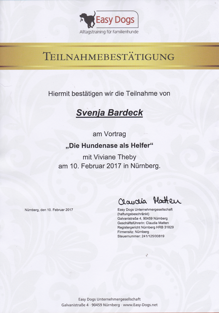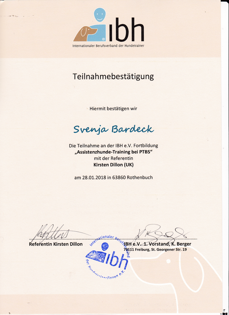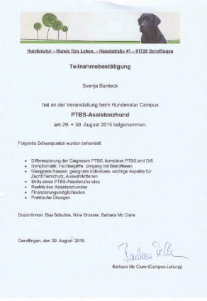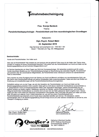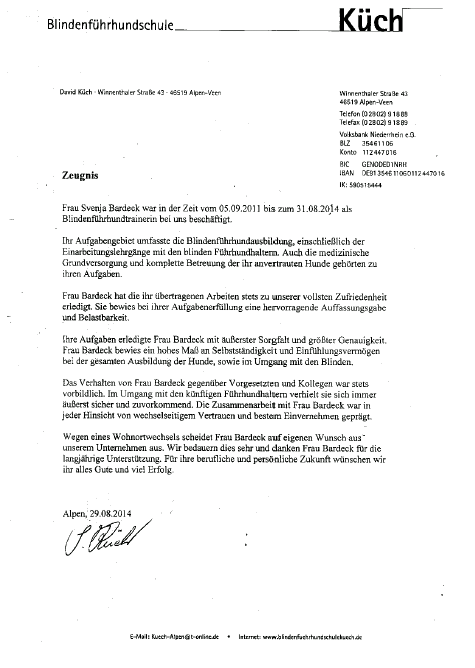 Ausbildungs-/ Arbeitszeugnis Blindenführhundetrainerin