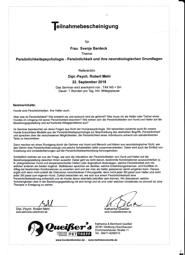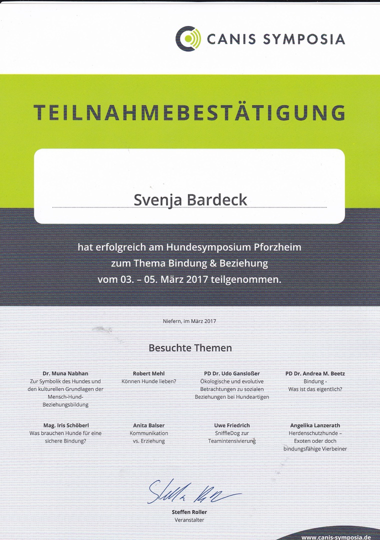 - "Spiel, Kreativität und Innovation - lustvoller Trip in das Spielverhalten des Hundes und des Menschen" - Dr. Feddersen-Petersen